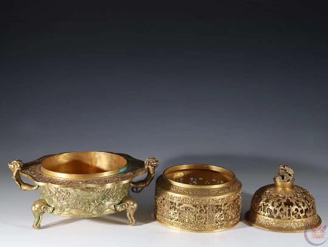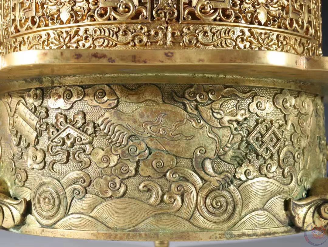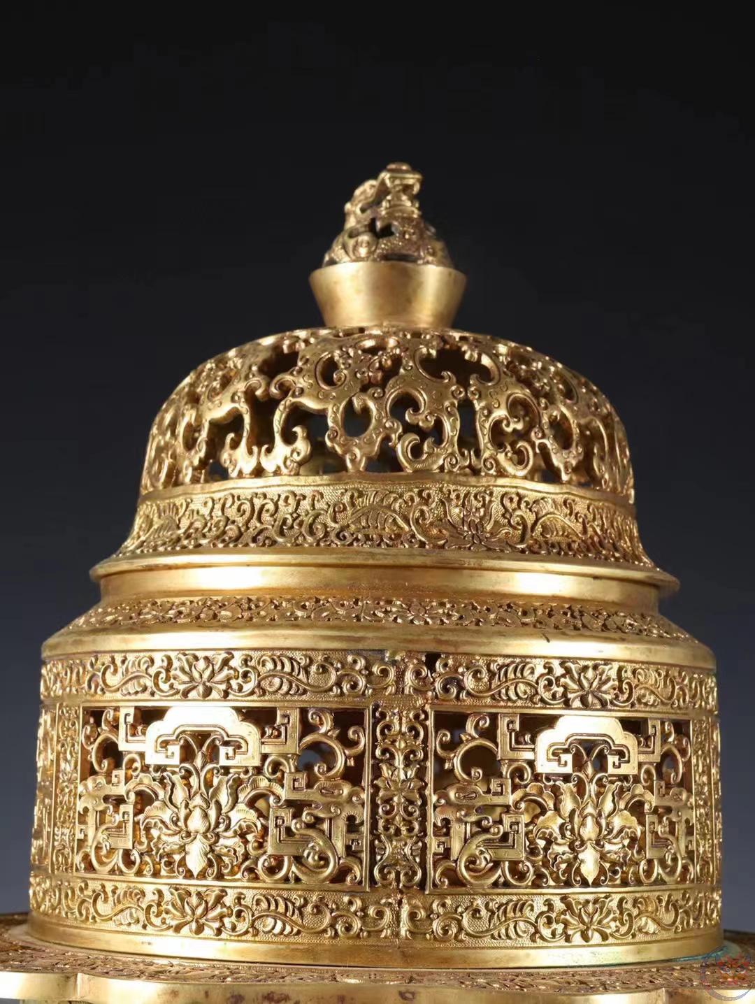 | 产品名称 : | 馆藏级 清代 铜鎏金 香薰炉 规格:高30.7cm 宽30cm 重11斤 精铜铸造,器形典雅,富贵堂皇,端庄秀色,精凿工艺非凡,线条清晰,品相极好。早期文物商店出货,贴有火漆鉴定印。 |