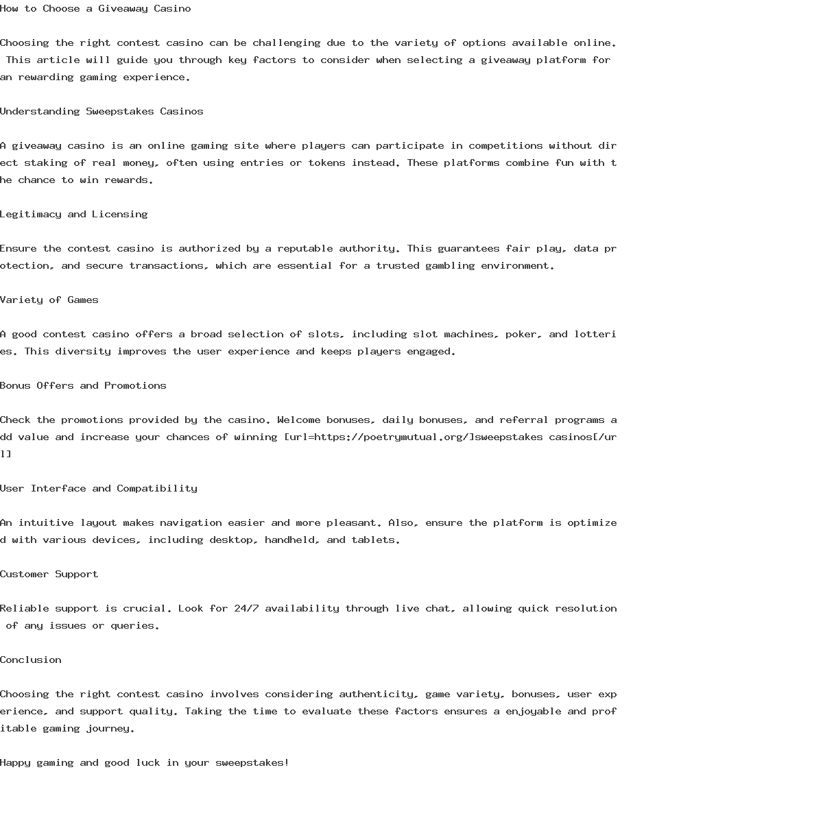 Choosing the right giveaway casino can be complex due to the variety of alternatives available online. This article will guide you through key factors to consider when selecting a contest platform for an enjoyable gaming experience.