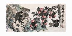 冯霖章(全国著名画家,原唐山画院院长,香港云峰画苑签约画家),鸟语花香,70厘米35.5厘米(2.2...