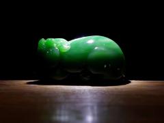 【荷韵】 收藏级!和田玉翠青荷花手镯,玉质温润细腻,油性十足,器形素雅,精雕荷花,肆意盛开,仿若有...