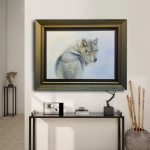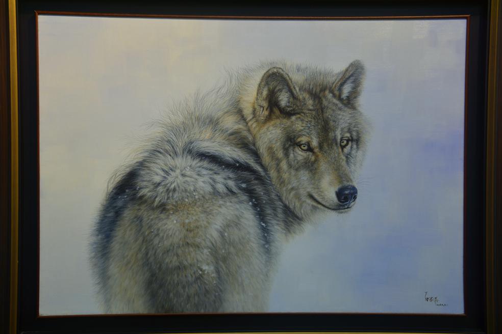 张运华的狼,是画到骨子里的纤细和逼真、生动。纤毛根根可数,被毛迎风乍舞,眼光如水注汪汪,动物之脸罩毛肤若见喜乐之表情。狼自是脱胎于自然,但美之见却是人间之想念最完美至极的“天狼”。